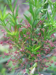 Внешне очень похож на бересклет карликовый, его высота без опоры не более 1 м, но при наличии опоры растение может достигать гораздо большей высоты, к тому жекуртина способна неограниченно разростаться в ширину, благодаря длинным стелющимся плетям, которые легко укореняются при соприкосновении с почвой далее формируя вторичные восходящие побеги. Листья вечнозеленые кожистые, линейно-ланцетные или узколанцетные, с наружной стороны блестящие, снизу сизоватые, по краю чуть свернутые, длиной до 7 см. Стебли многогранные, ребристые, иногда оснащены узкими крыльями, такие же зеленые как листья, в основном полегающие и расползающиеся часто с последующим укоренением и разростанием куртин в ширину. Плоды Цветет бересклет Коопманна в мае – июне, цветки невзрачные, одиночные или собранные в соцветия по 2-3 штуки, сидят на длинных цветоносах. Плоды – четырехлопастные коробочки розоватой окраски, оснащены узкими крыльями, созревают в июле – августе. В средней полосе России плоды вызревают редко, но в более теплых регионах эта способность не утрачена. Цветение наступает на третий год после посадки (речь идет о культурных экземплярах). Бересклет Коопманна размножается как семенным, так и вегетативным способами. Наилучшие результаты дают осенний посев и размножение отпрысками и отводками.