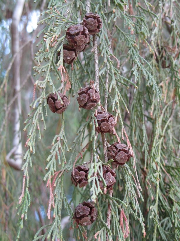 Шикарное плакучее хвойное дерево средней величины для субтропического климата. Хвоинки светло- или серо-зеленые, густо-прижатые, чешуевидные, 1-1,5 мм длиной, верхушка остроконечная. Опыление март-май, пыльники эллипсоидные или яйцевидные, 2,5-5 мм; микроспорофиллы 10-14. Шишки темно-коричневые в зрелом состоянии, шаровидные, диаметром 8-15 мм, на необходимых черешках; чешуек шишек 6-8(-12), пятиугольные, уникальная плодородная чешуйка содержит 3-5 (6) семян. Семена созревают спустя год после опыления в мае-июне. Они светло-коричневые, блестящие, обратнояйцевидно-ромбические или почти округлые, уплощённые, 2,5-3,5 мм.