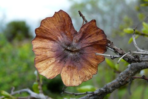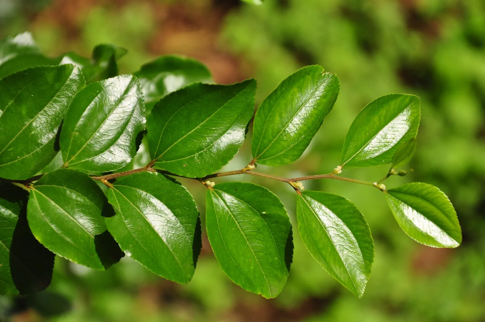 Своими небольшими опадающими листьями он напоминает европейский P. spina-christi , но его парные шипы короче, и оба растения стоят вертикально; костянка совершенно другая, без широкого, плоского края, напоминающего сомбреро, и в зеленом и незрелом виде больше похожа на цветок морозника (но с плотной внутренней частью и только тремя «лепестками» или лопастями по краю). Листья не расположены ниже зигзагообразной ветки, а цветы не расположены выше нее, как у P. spina-christi .