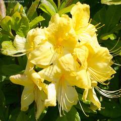 Сорт относится к гибридной группе Кнапп Hill-Exbury, которая является одной из самых морозостойких, для выращивания в средней полосе в умеренном климате. Это листопадный куст с прямостоячей формой, в 10 лет 1,5 м в высоту и 1,7 м в ширину. Листья крупные, светло-зеленые, опушенные, осенью красиво окрашенные в желтый цвет. Цветет очень обильно, ежегодно, в конце мая-начале июня. Цветки собраны по несколько штук в эффектные верхушечные соцветия. Они интенсивно-желтые, крупные, 6-8 см в диаметре, с характерно загнутыми назад лепестками.