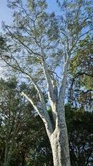 Как правило высокое кустовое или многостволое дерево до 15 м высотой, единично до 25-30 м., при диаметре ствола около 1 м. Известна своей яркой, пятнистой, как у платана корой, по этому признаку это одна из самых декоративных сосен. Кора гладкая, тускло-серая, шелушащаяся небольшими пластинами, таким образом по коре вид можно узнать издалека. Старые стволы часто становятся мелово-белыми, чешуйки отслаиваясь с возрастом придают коре серовато-белый цвет, местами с рыжеватыми пятнами. Иглы жесткие, тёмно-зелёные в пучках по 3, длиной 8-15 см, шириной 0,5—2 мм. Шишки мелкие светло-бурые, смолистые, с отогнутыми назад колючками на щитках, они одиночные или по 2-3, размером 5-6 × 4-5 см. Семена небольшие орешки с очень коротким крылом, съедобные.